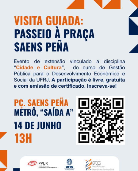 Com o objetivo de convidar o público para participar de nossa visita guiada à Praça Saens Peña, preparada pela turma no dia 11 de junho de 2025, foi realizada uma live transmitida ao vivo pelo canal da Agência IPPUR no YouTube (disponível no link https://www.youtube.com/watch?v=ziBx8d_m1Dg). A transmissão iniciou apresentando a disciplina (teórica e de extensão) Cidade e Cultura, e foi aberta, gratuita, com emissão de certificado para os participantes inscritos. Foram apresentados os principais objetivos, conteúdos e atividades práticas da disciplina, além de feita a convocação ao público para a participação na visita guiada à Praça Saens Peña.