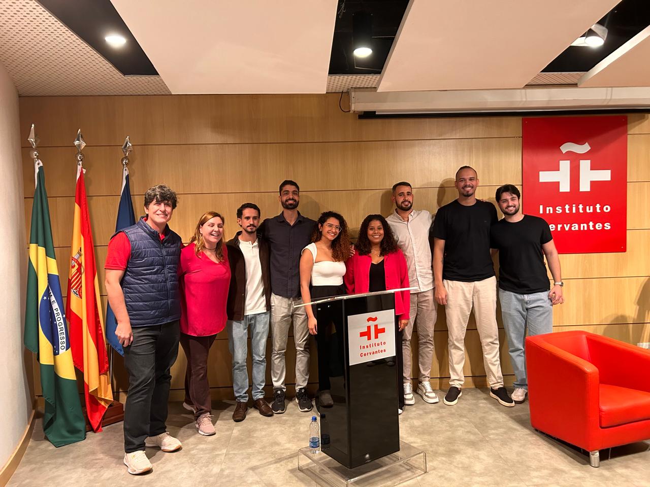 Acervo próprio. Discentes da disciplina que realizaram apresentação no Instituto Cervantes e professora Renata Bastos