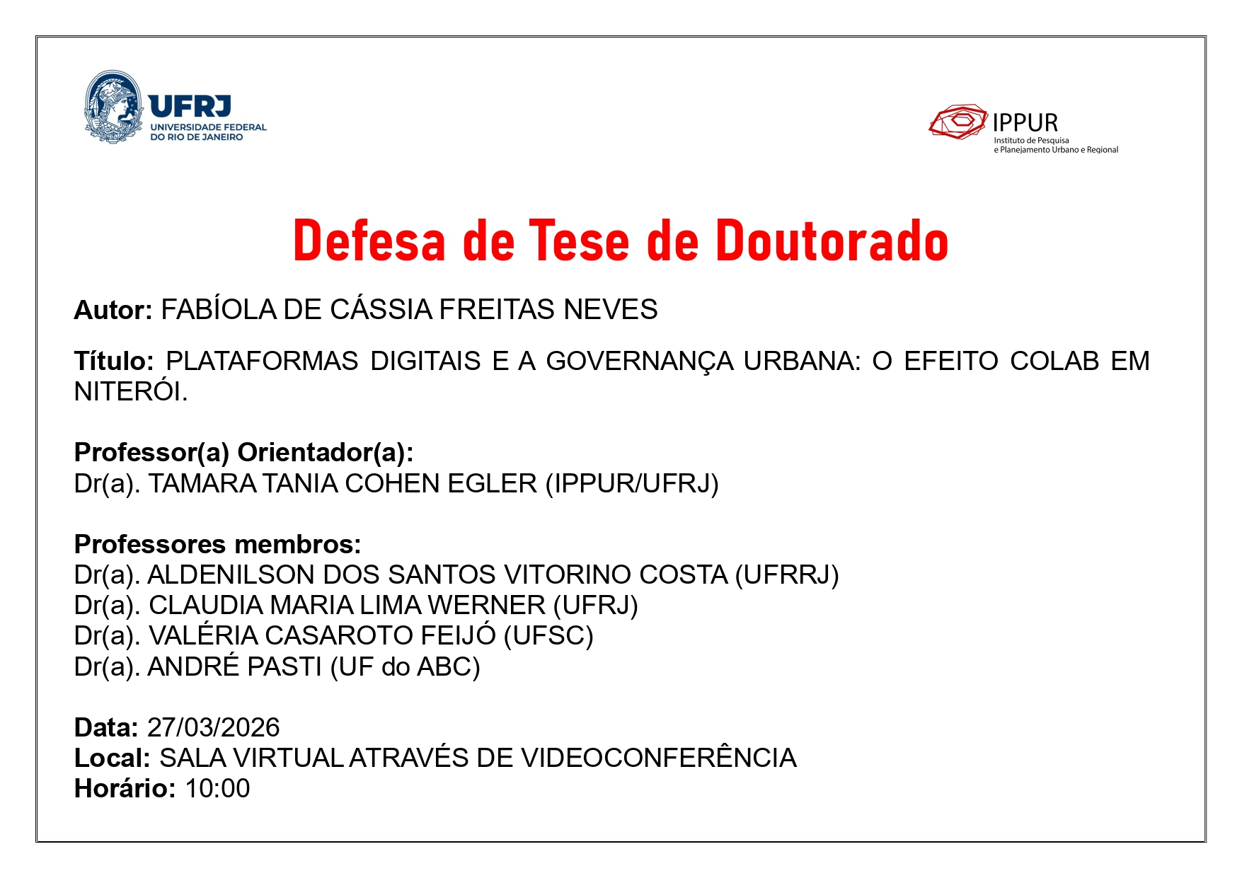 • >> Defesa de Tese de Doutorado – Fabíola de Cássia Freitas Neves – 27/03/2026