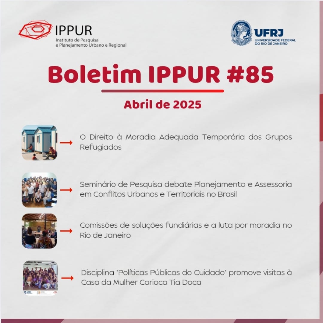 Para comentários, sugestões e pedidos de divulgação de eventos e atividades, entre em contato com a Agência IPPUR pelo e-mail: ippurboletim@ippur.ufrj.br .