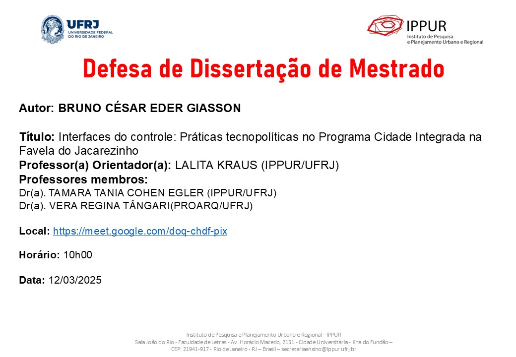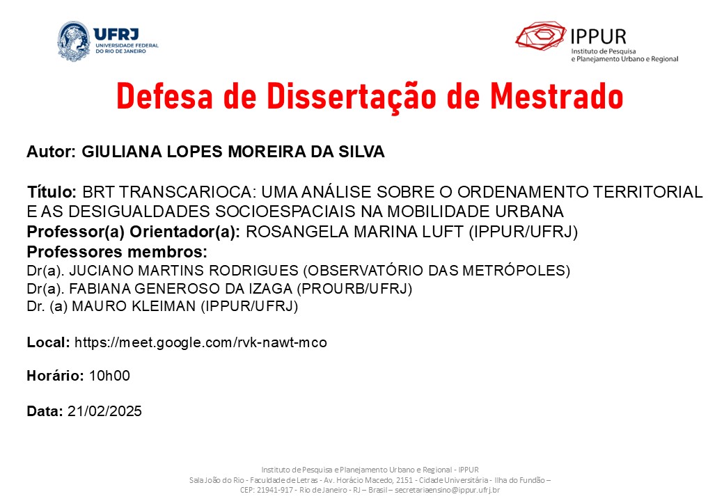 Informe IPPUR – Início das aulas da Pós-Graduação – 18/03/2025