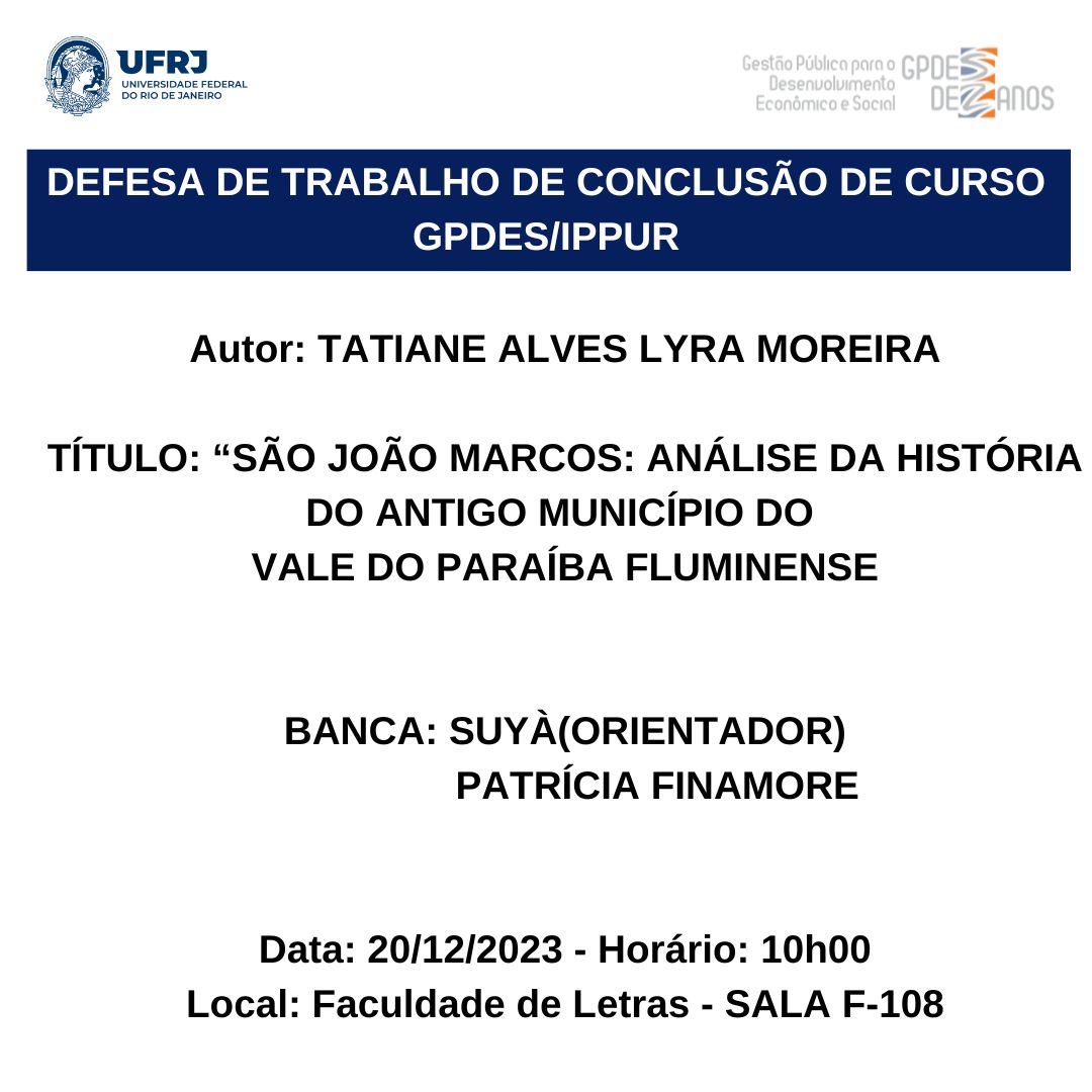 Defesa de TCC – Tatiane Alves Lyra Moreira – 20/12/2023