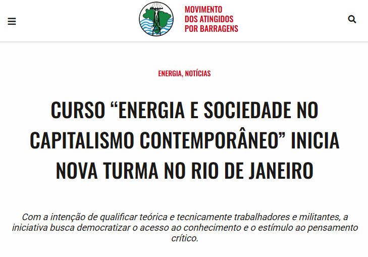 Movimento dos Atingidos por Barragens divulga a nova turma do curso de extensão e especialização em parceria com o IPPUR